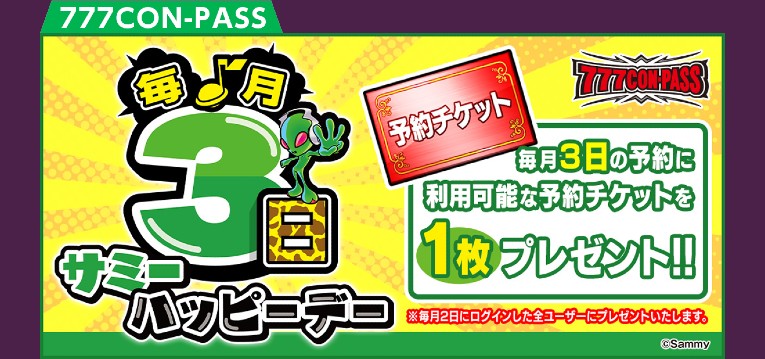 今回(6月3日)で三度目となるSammy社の企画『サミーハッピーデー(SammyHappyDay)』。4月3日&5月3日に引き続き、QUOカードPayが当たるTwitterキャンペーン(開催中)や同社コンテンツ上のイベント開催が予定されています。また、界隈に浸透しつつある「毎月3日はSammy機種に高設定が投入される」件にも注目です。