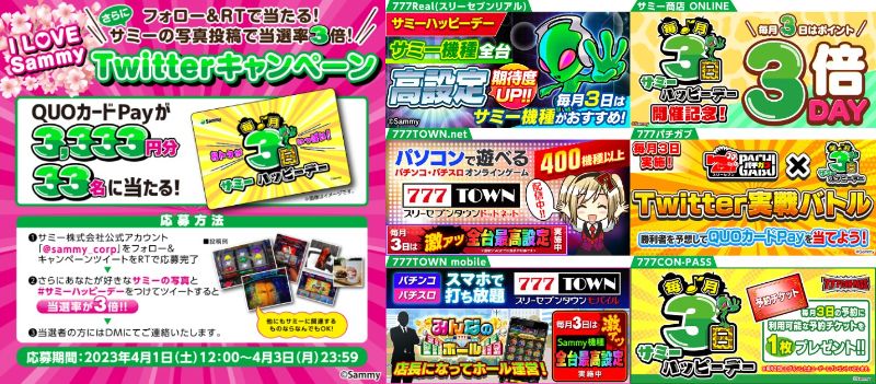 Happy Sammy day♬.*゚#PIA#サミーの日#ホントどうでもいいけど背景の色ぎりぎりまで超迷ったw pic.twitter.com/OU6WYOFeFH— うららの新台購入最前線 (@PIA_pachi_slo) March 30, 2023